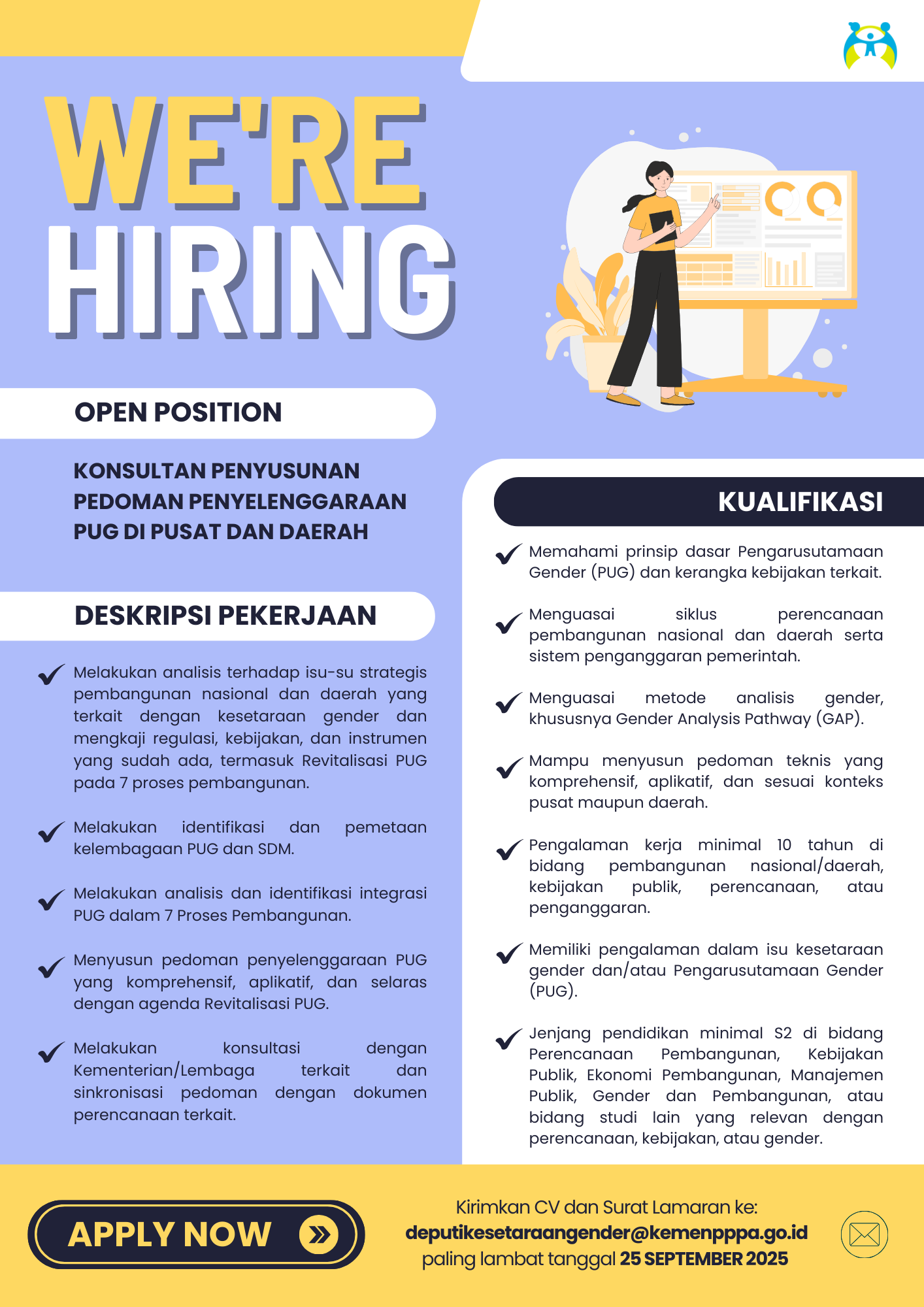 Rekrutmen Konsultan Penyusunan Pedoman Penyelenggaraan PUG di Pusat dan Daerah