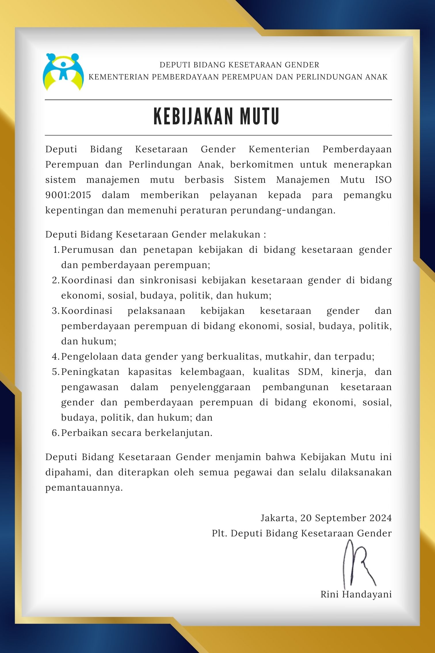 Kebijakan Mutu Deputi Bidang Kesetaraan Gender