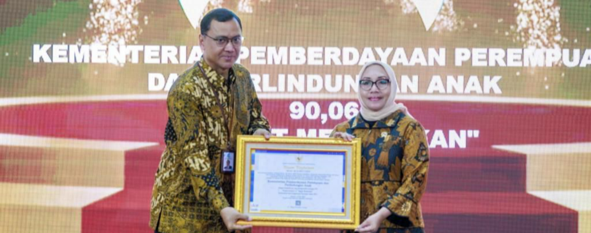 Jakarta (20/10) – Kementerian Pemberdayaan Perempuan dan Perlindungan Anak (Kemen PPPA) berhasil meraih predikat tertinggi, yaitu "AA" (Sangat Memuaskan) atas Hasil Pengawasan Kearsipan 2024 dari Arsip Nasional Republik Indonesia (ANRI). Menteri Pemberdayaan Perempuan dan Perlindungan Anak (PPPA), Arifah Fauzi hadir langsung menerima penghargaan dari ANRI.