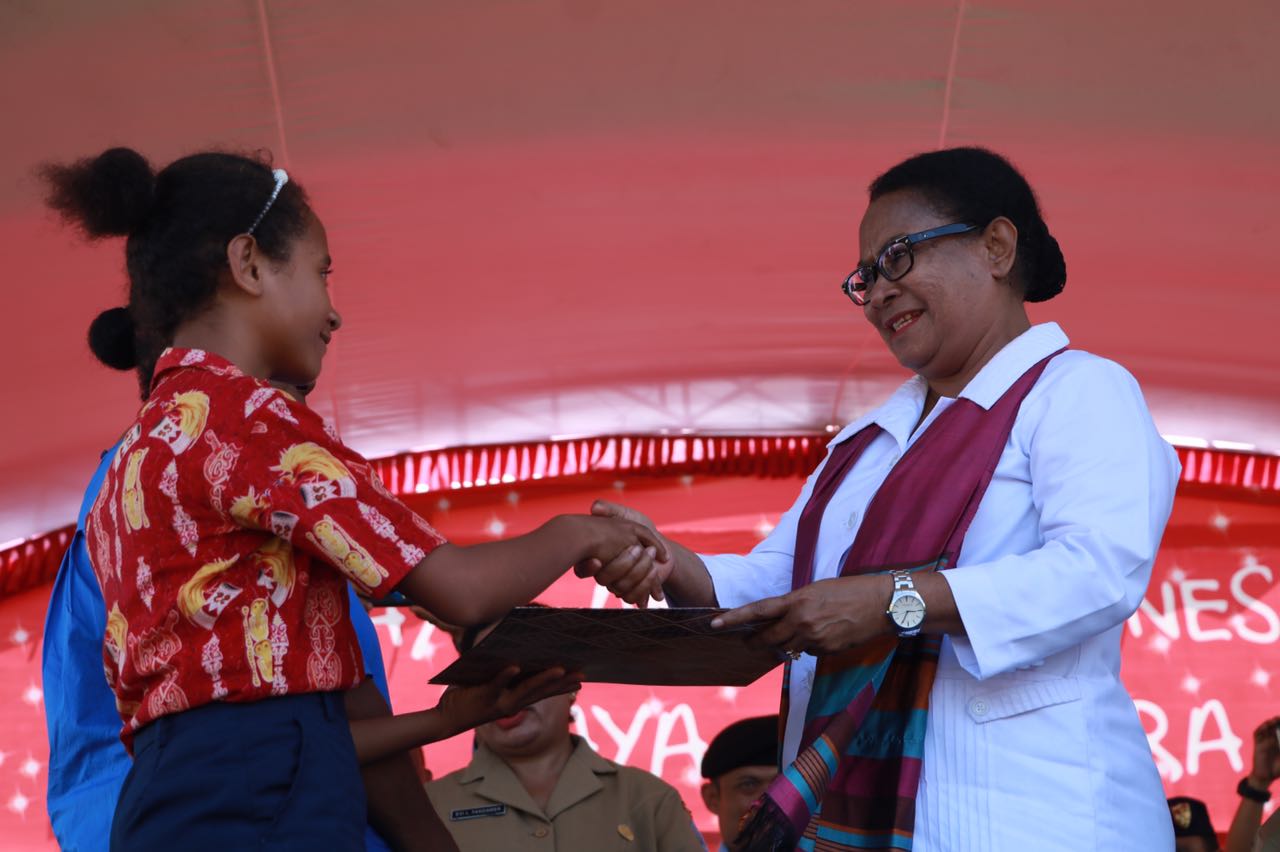 Biak Numfor (8/8) Menteri Pemberdayaan Perempuan dan Perlindungan Anak menghadiri perayaan Hari Anak Nasional di Kabupaten Biak Numfor, Prov. Papua, dan menyelenggarakan Dialog Penguatan Ketahanan Keluarga dalam Upaya Meningkatkan Ekonomi Keluarga dan Pelatihan Kewirausahaan bagi perempuan lansia. Di tanah kelahirannya, Menteri Yohana menghimbau agar pemerintah dapat bekerja bersama masyarakat untuk mewujudkan perlindungan anak dan meningkatkan ekonomi keluarga, khususnya bagi perempuan lansia.