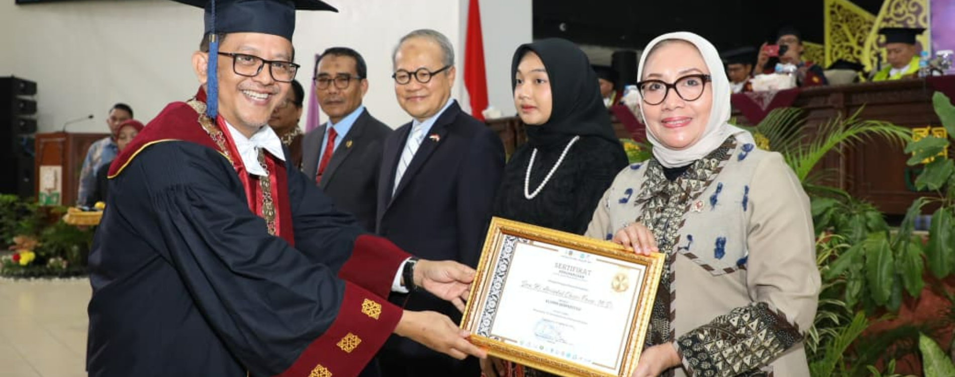 Menutup orasi ilmiah, Menteri PPPA menyerukan pentingnya menyatukan tradisi, inovasi, dan ekoteologi dalam visi masa depan bangsa sebagai bagian dari komitmen untuk terus memperjuangkan perempuan berdaya, anak terlindungi, menuju Indonesia Emas 2045 yang berkelanjutan dan berkeadilan.