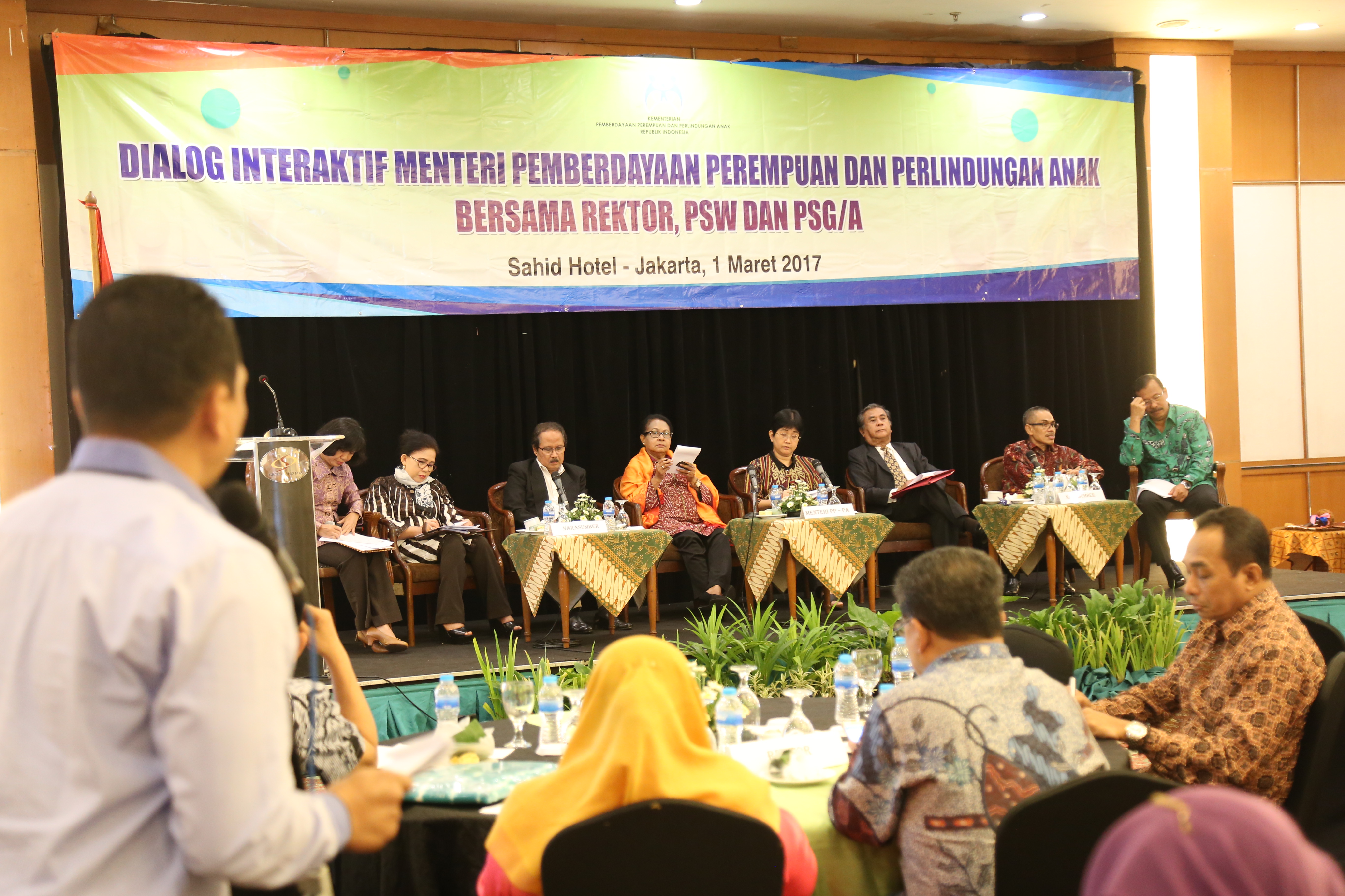 Menteri Yohana menekankan pentingnya Perguruan Tinggi (PT) dan Pusat Studi Wanita membawa isu kesetaraan gender dalam ranah akademik. Untuk itu, ia menghimbau kepada seluruh Rektor dan Ketua Pusat Studi Wanita untuk mengambil langkah konkrit dengan merumuskan kebijakan gender dalam pendidikan nasional. Perguruan Tinggi memiliki peran penting untuk meningkatkan kemampuan mahasiswanya di bidang kewirausahaan selain kecerdasan di bidang akademik dan mendorong mikro ekonomi kaum perempuan yang memutuskan dirinya sebagai ibu rumah tangga. Demikian pula Pusat Studi Gender/Anak (PSG/A) dan Pusat Studi Wanita (PSW) juga penting terlibat dalam pelaksanaan program pemberdayaan perempuan dan perlindungan anak, diantaranya melalui kajian-kajian yang rekomendasinya dapat menjadi bahan penyusunan kebijakan pembangunan PPPA dan dapat diimplementasikan bermitra dengan lembaga pemerintan dan non pemerintah. “Dalam rangka akselerasi tujuan pembangunan nasional, termasuk di dalamnya pembangunan bidang pendidikan, menuju kesetaraan dan keadilan gender dalam seluruh aspek kehidupan, baik dalam kehidupan keluarga maupun dalam kehidupan berbangsa dan bernegara, maka pendidikan yang berwawasan gender menjadi pilihan yang strategis,” tutup Menteri Yohana.