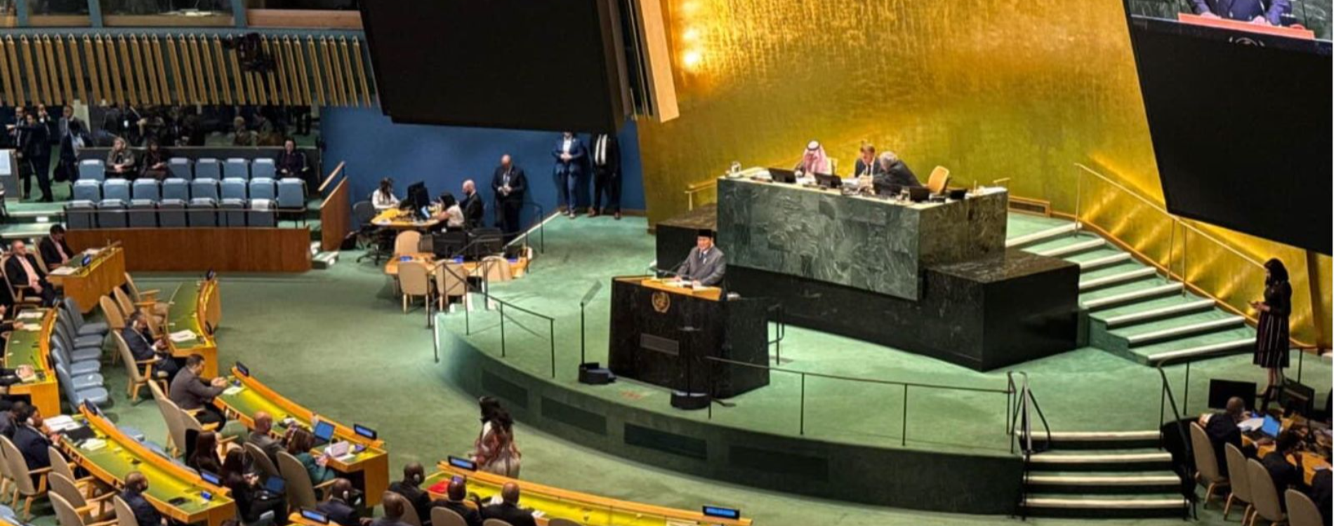 New York (25/9) – Pemerintah Indonesia menyampaikan keprihatinan mendalam atas tragedi kemanusiaan yang berlangsung di Gaza. Presiden Republik Indonesia, Prabowo Subianto dalam pidatonya di Konferensi Internasional Tingkat Tinggi untuk Penyelesaian Damai atas Masalah Palestina dan Implementasi Solusi Dua Negara menegaskan komitmen Indonesia terhadap solusi dua negara untuk menuju perdamaian. Mengawali pidatonya, Presiden RI, Prabowo Subianto menyampaikan penghargaan kepada Pemerintah Prancis dan Kerajaan Arab Saudi atas kepemimpinan kedua negara dalam menyelenggarakan pertemuan penting ini