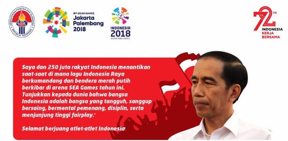 Presiden Joko Widodo dalam kesempatan sebelumnya saat melepas kontingen Indonesia untuk SEA Games XXIX/2017 Kuala Lumpur, Senin (7/8) lalu, telah meminta para atlet menjadi inspirasi dari optimisme bagi masyarakat.