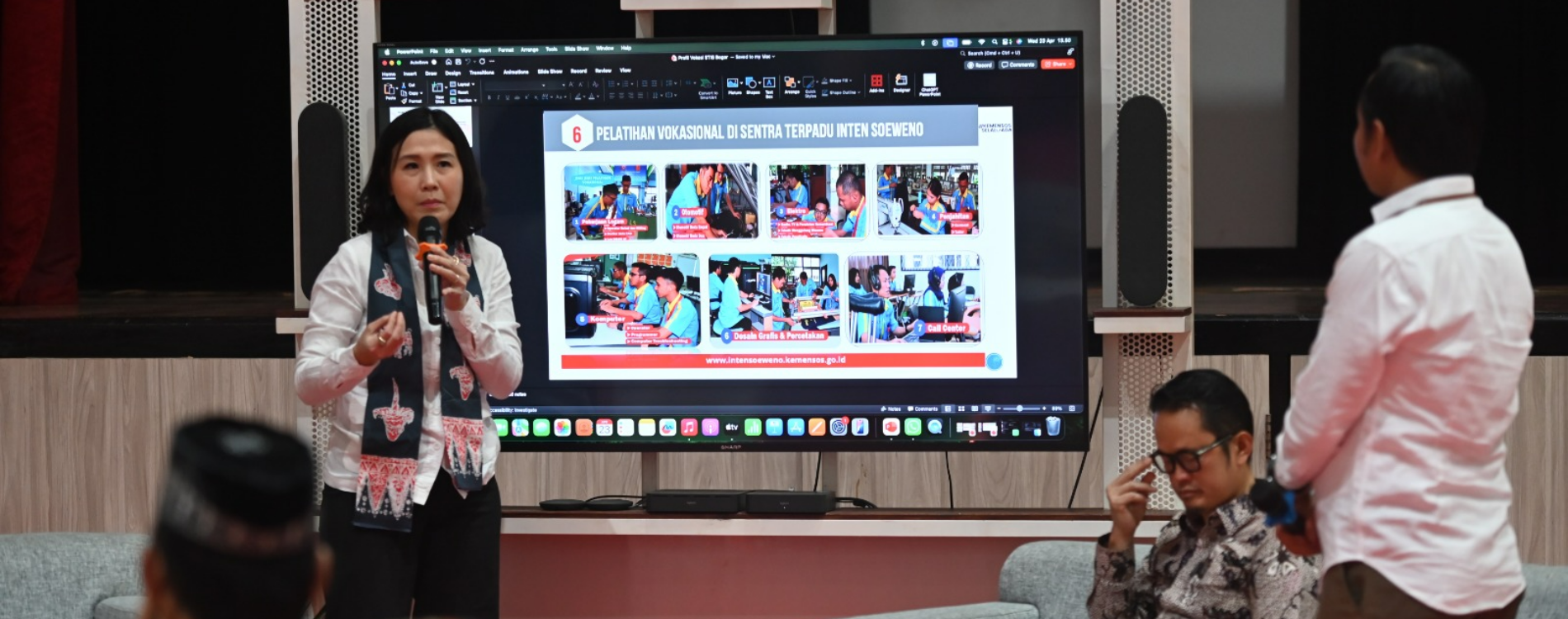 "Sentra Terpadu Inten Soeweno telah menjalankan fungsi luar biasa dalam mendampingi dan melayani kelompok rentan, terutama penyandang disabilitas. Oleh karena itu, penguatan sinergi dan kolaborasi antar kementerian, lembaga, dan mitra sangat penting agar program yang ada saling melengkapi dan memberi manfaat lebih besar. Sinergi ini bukan hanya soal bekerja bersama, tapi juga menyatukan visi dan strategi agar dampaknya bisa langsung dirasakan masyarakat. Kolaborasi yang efektif akan mempercepat terwujudnya pembangunan manusia Indonesia yang inklusif dan berkelanjutan," ujar Woro.