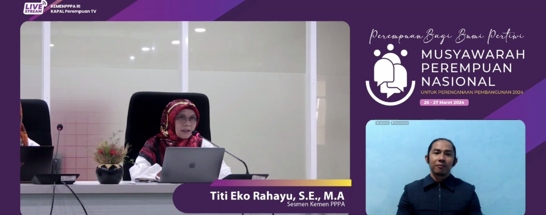 Jakarta (28/3) - Dalam Musyawarah Nasional (Munas) Perempuan 2024 hari kedua yang dilaksanakan secara daring, Kementerian Pemberdayaan Perempuan dan Perlindungan Anak (Ke...