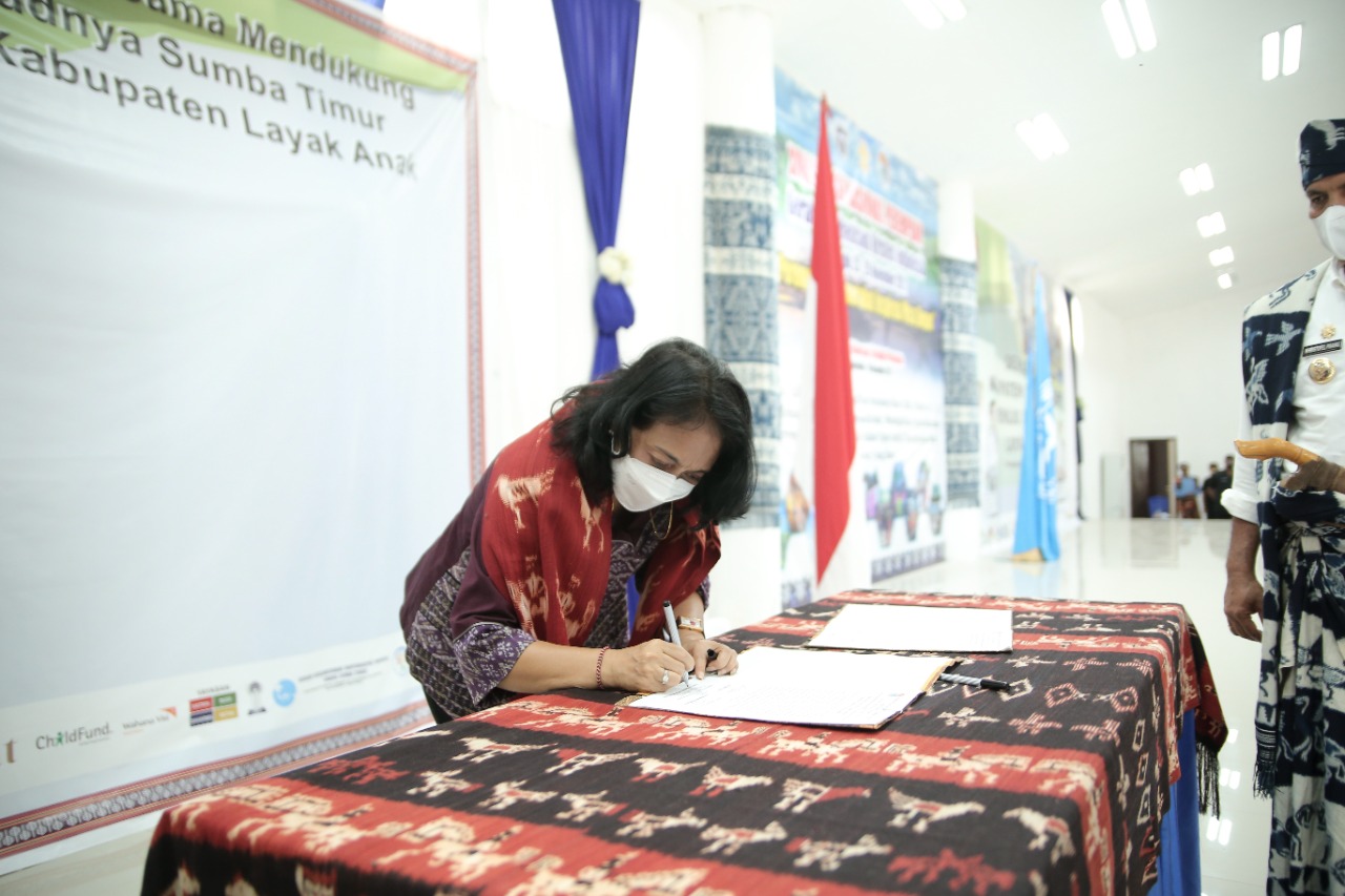 Menteri Pemberdayaan Perempuan dan Perlindungan Anak (PPPA), Bintang Puspayoga menghadiri Deklarasi Sumba Timur Menuju Kabupaten Layak Anak di Waingapu, Nusa Tenggara Tim...