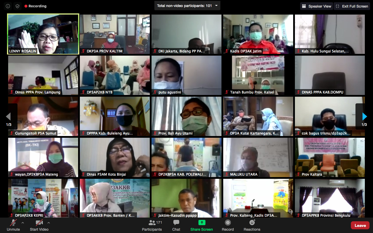 Menteri Pemberdayaan Perempuan dan Perlindungan Anak (Menteri PPPA), Bintang Puspayoga memberikan apresiasi yang tinggi kepada Gugus Tugas Percepatan Penanganan (GT PP) C...