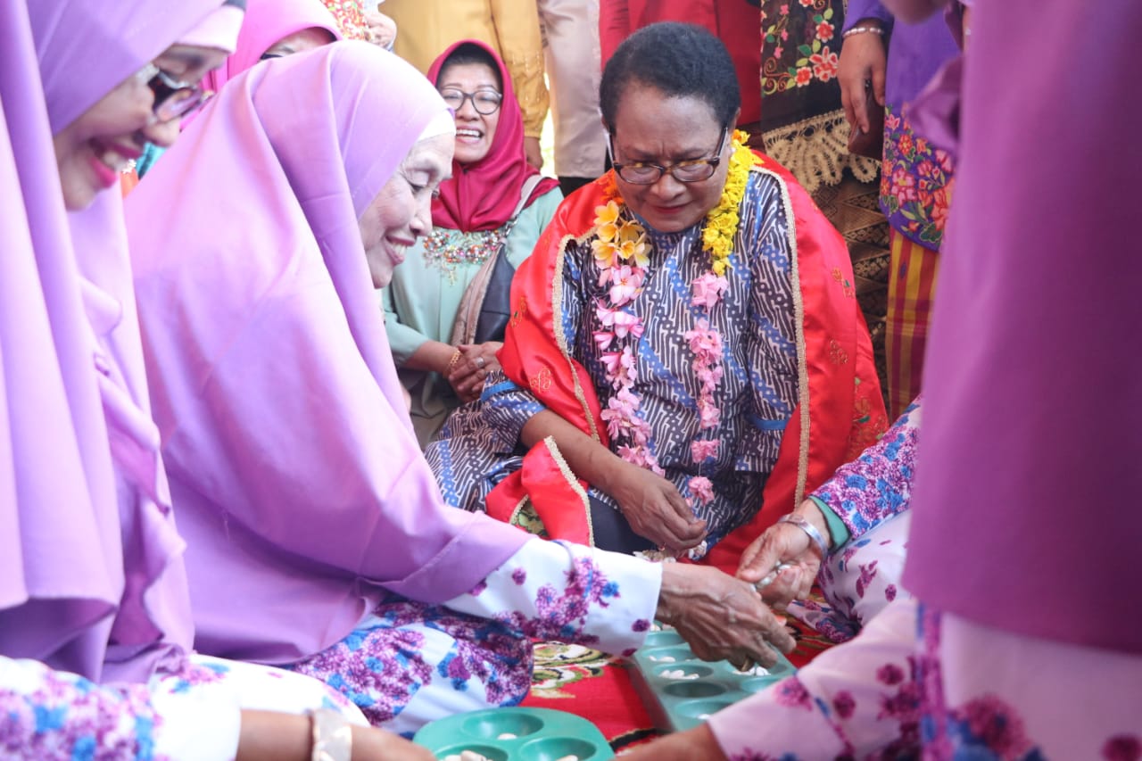 Wakil Presiden Republik Indonesia, Muhammad Jusuf Kalla bersama Menteri Pemberdayaan Perempuan dan Pelindungan Anak (PPPA), Yohana Yembise secara simbolis memberikan peng...