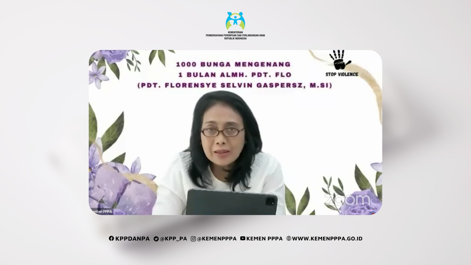 Jakarta (30/04) - Menteri Pemberdayaan Perempuan dan Perlindungan Anak (PPPA), Bintang Puspayoga menyampaikan belasungkawa atas meninggalnya Almarhumah Pendeta Flo. Dalam sambutannya di acara Peringatan Reflektif 1 (satu) Bulan Wafatnya Pendeta Flo dan Aksi “1000 Bunga Buat Pendeta Flo”, Menteri PPPA mendorong pihak kepolisian untuk mengungkap kasus kematian Pendeta Flo yang diindikasikan mengalami kekerasan dalam rumah tangga, sehingga penyebab kematiannya dapat segera terungkap dan tidak menimbulkan spekulasi di kalangan masyarakat.