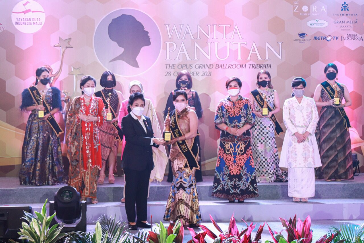 Menteri PPPA Bintang Puspayoga menyerahkan Penghargaan Penganugerahan Wanita Panutan 2021 kepada 12 perempuan yang telah berjuang dan berkarya dalam menebarkan manfaat ba...