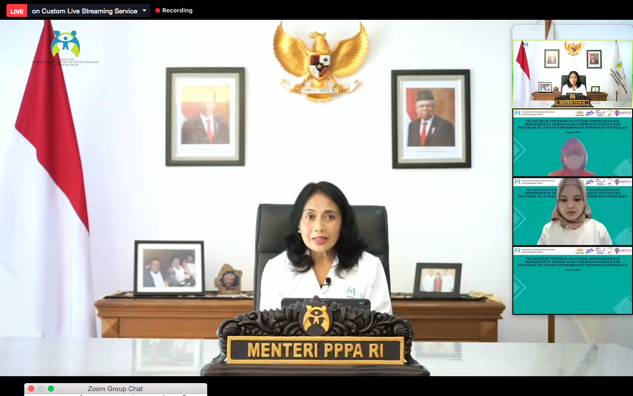 Menteri Pemberdayaan Perempuan dan Perlindungan Anak (PPPA), Bintang Puspayoga meluncurkan program Pelatihan Kewirausahaan Berspektif Gender bagi Perempuan Rentan dan Pro...