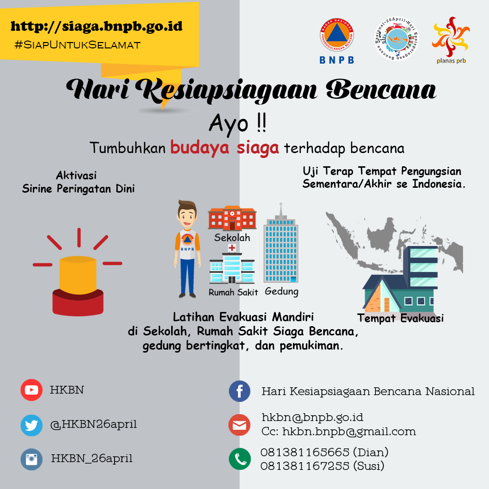 Badan Nasional Penanggulangan Bencana (BNPB) menginisiasi Hari Kesiapsiagaan Bencana dengan mengajak semua pihak meluangkan satu hari untuk melakukan latihan kesiapsiagaa...