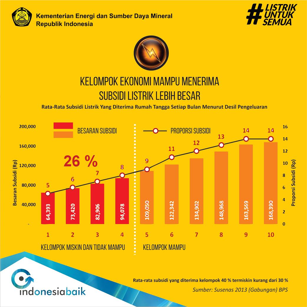 Pada tahun 2015, subsidi listrik paling besar dinikmati oleh pelanggan rumah tangga 450 VA dan 900 VA yang mencapai Rp. 49,32 Triliun (87%). Namun demikian, pada dua golo...