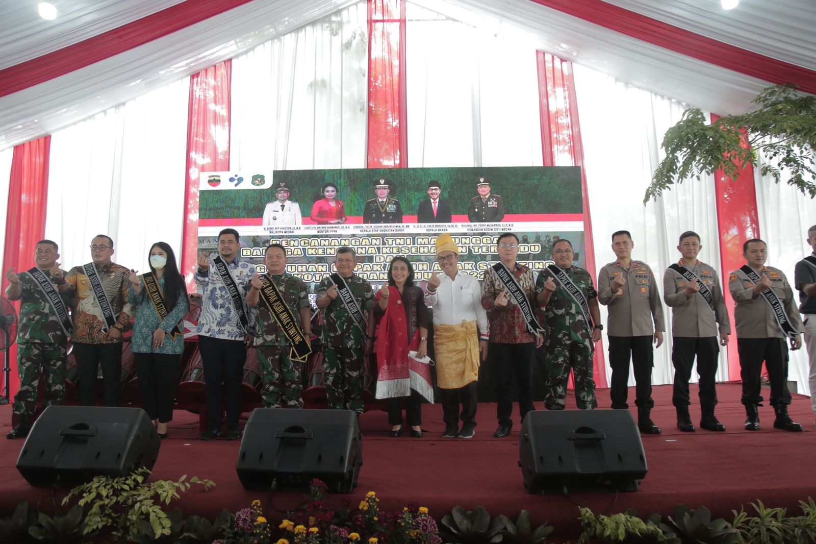 Medan (28/10) – Menteri Pemberdayaan Perempuan dan Perlindungan Anak (Menteri PPPA) Bintang Puspayoga mengapresiasi langkah maju yang diambil oleh Walikota Medan, Bobby Nasution untuk menggerakkan sosok pemimpin-pemimpin di daerah menjadi Bapak Asuh Anak Stunting di Kota Medan. Aksi penyematan Bapak Asuh Anak Stunting kepada seluruh pimpinan OPD ini merupakan hasil sinergi lintas sektoral oleh Pemerintah Kota Medan dengan BKKBN dan TNI Angkatan Darat.