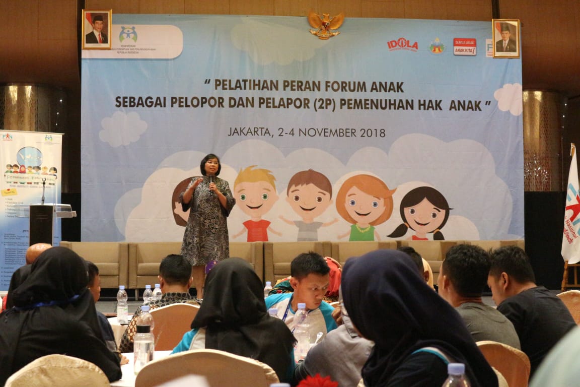 Jakarta (02/11) – Pemerintah berkomitmen memenuhi hak anak sebagaimana amanat konstitusi. Komitmen ini diperkuat dengan melibatkan peran anak-anak Indonesia yang tergabung dalam Forum Anak. Forum Anak merupakan mitra pemerintah dalam menyelesaikan permasalahan anak. Forum Anak menjadi wadah dalam rangka pemenuhan hak partisipasi anak yang dibentuk secara berjenjang, mulai tingkat nasional, provinsi, kabupaten/kota, kecamatan, dan desa/kelurahan dengan keanggotaan dari berbagai kelompok anak.