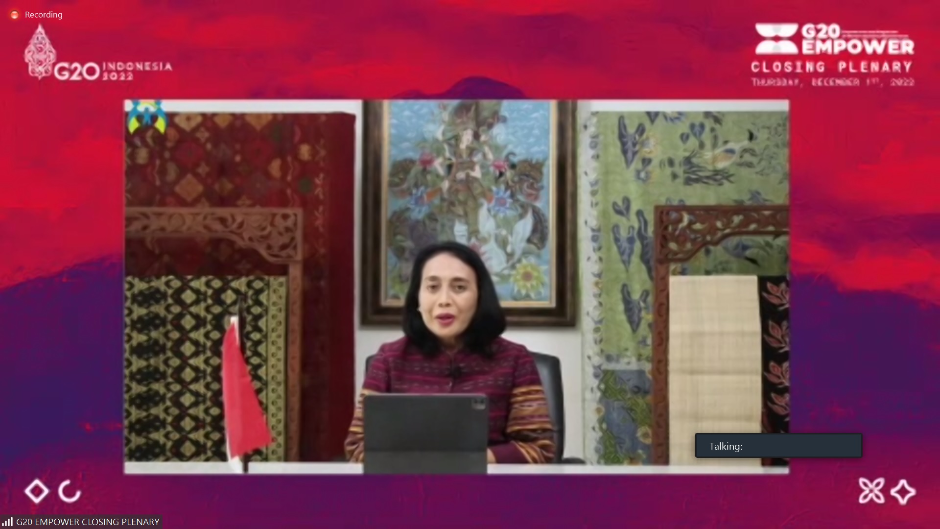 “Hal ini menunjukkan bahwa negara-negara anggota G20 juga serius menempatkan perempuan sebagai inti dari pembangunan yang inklusif dan berkelanjutan,” ujar Menteri PPPA dalam G20 EMPOWER Closing Plenary 2022, di Jakarta, Kamis (1/12).