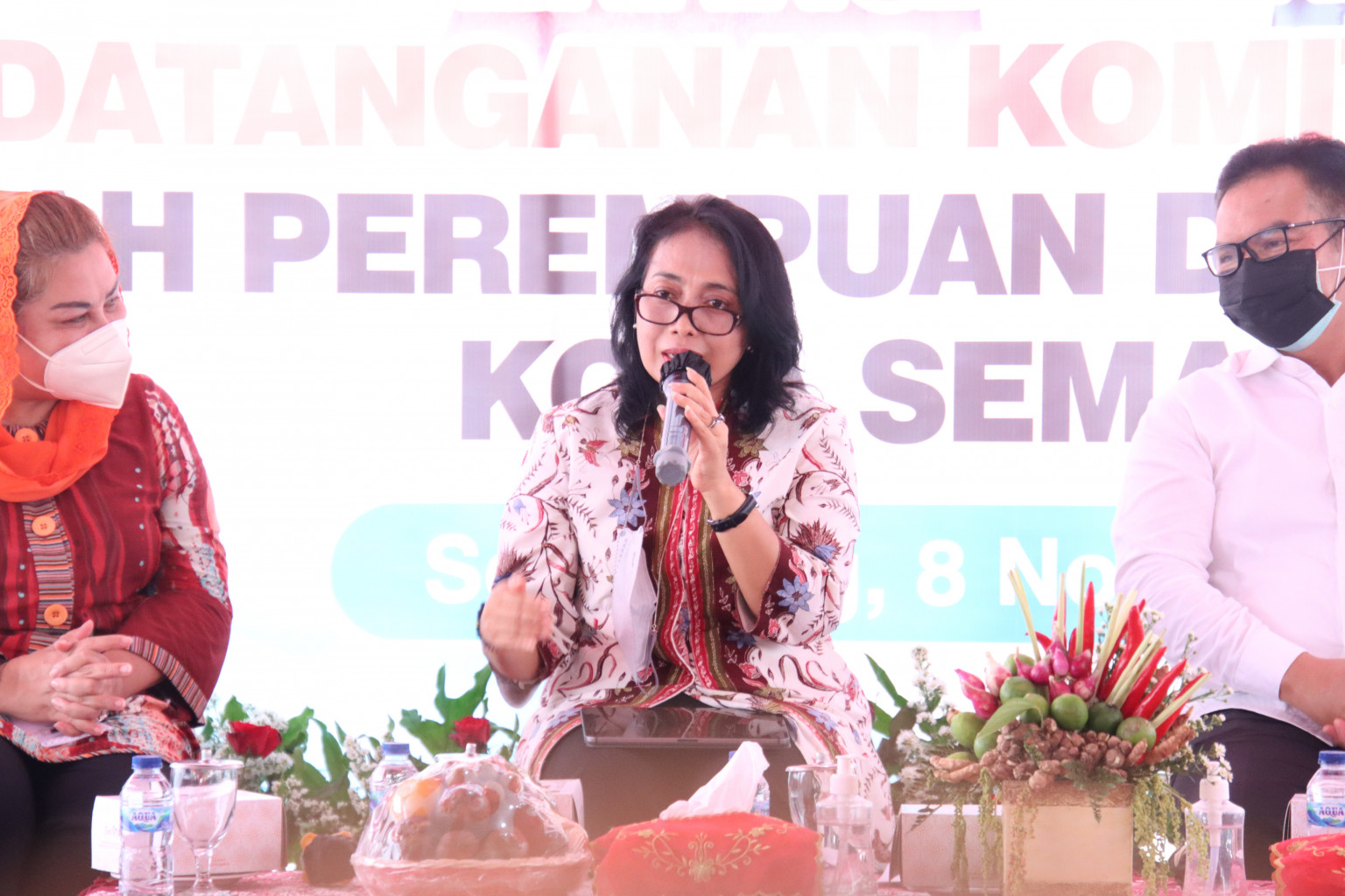 Semarang (9/11) – Kementerian Pemberdayaan Perempuan dan Perlindungan Anak (Kemen PPPA) berkomitmen mengentaskan permasalahan perempuan dan anak, salah satunya stunting melalui Kick Off Kelurahan Ramah Perempuan dan Peduli Anak di Kelurahan Tanjung Mas, Semarang, Jawa Tengah pada Senin (8/11). Selain pencanangan, Menteri PPPA, Bintang Puspayoga turut memberikan paket bantuan bagi 79 anak stunting dan ibu hamil di Kelurahan Tanjung Mas.