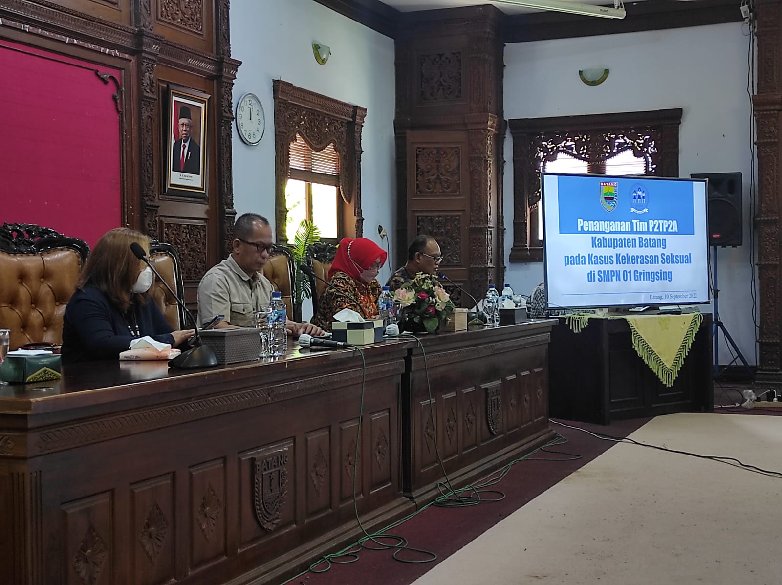Batang (12/9) – Berdasarkan tindak lanjut atas kasus kekerasan seksual yang terjadi di SMPN di Kabupaten Batang, Kementerian Pemberdayaan Perempuan dan Perlindungan Anak (KemenPPPA) yang diwakili oleh Deputi Perlindungan Khusus Anak, Nahar, memfasilitasi forum koordinasi dengan agenda membahas tidak lanjut penanganan kasus kekerasan seksual yang dilakukan oleh oknum Guru berinisial AM, pada Sabtu (10/9).