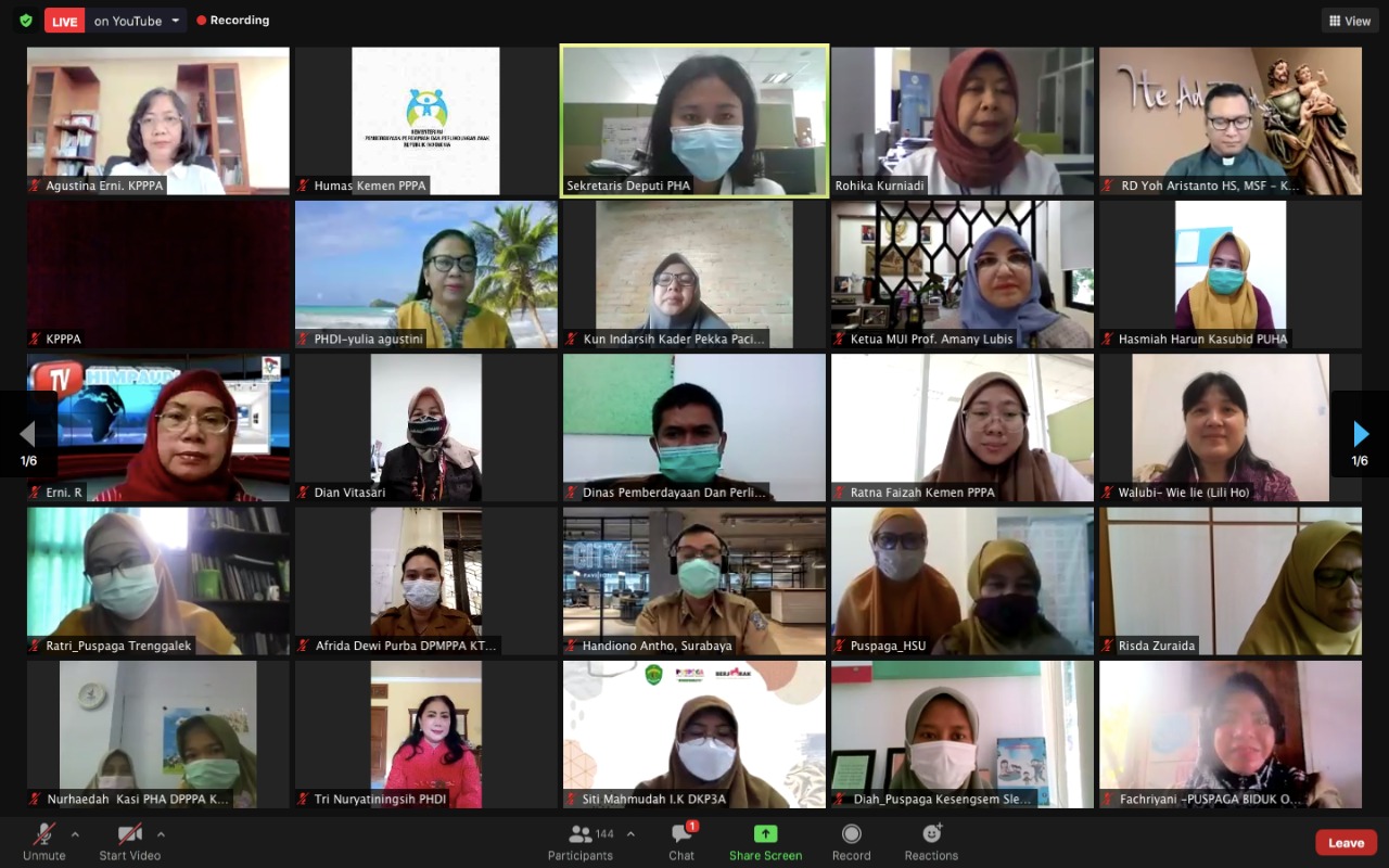 Jakarta (21/04) – Kementerian Pemberdayaan Perempuan dan Perlindungan Anak (Kemen PPPA) terus melakukan upaya advokasi dan sosialisasi pencegahan perkawinan anak bersama stakeholders, mengingat perkawinan anak merupakan salah satu bentuk pelanggaran hak anak. Salah satunya dengan menyelenggarakan Diskusi Interaktif Pencegahan Perkawinan Anak dalam Pandangan Lintas Agama yang dilakukan secara virtual.