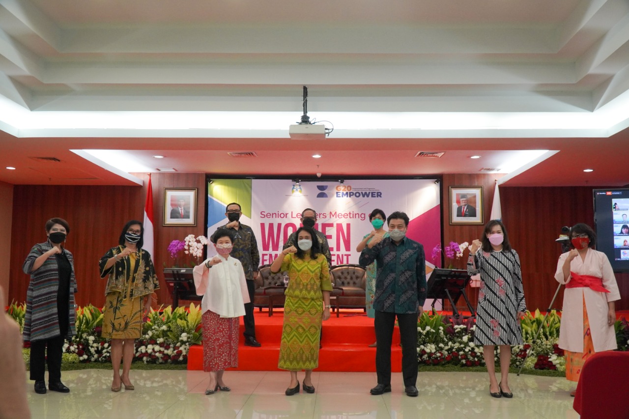 Kemen PPPA sebagai salah satu focal point G20 Empowerment Indonesia hari ini menyelenggarakan Seniors Leaders’ Meeting on Women Empowerment guna menyatukan komitmen untuk mewujudkan pemberdayaan perempuan. Menteri Bintang juga menyampaikan agar pertemuan seperti ini dapat terus dilaksanakan secara berkala dalam lingkup yang lebih kecil agar lebih intens membahas terkait pemberdayaan perempuan dan perlindungan anak.