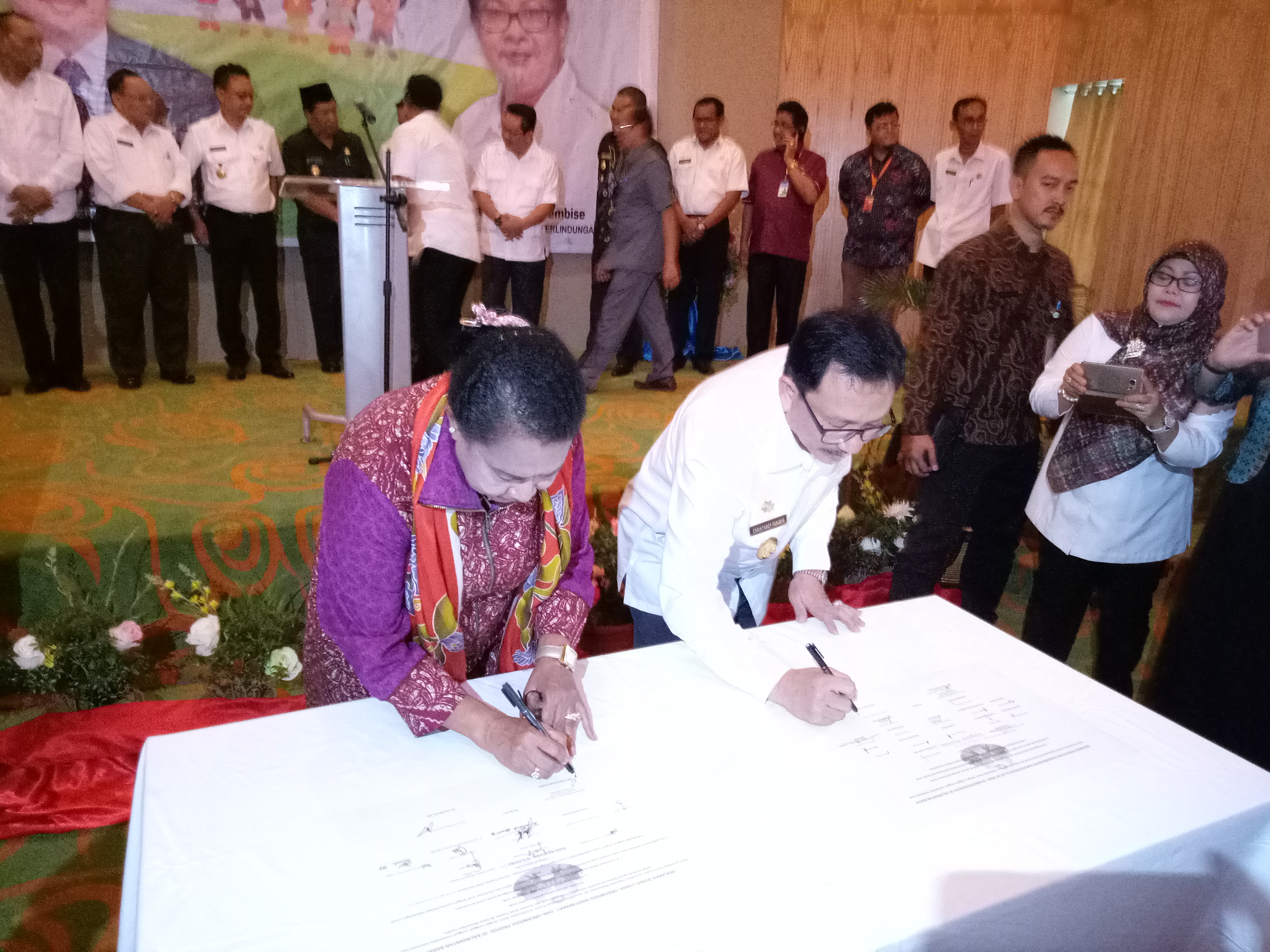 “Saya memberikan apresiasi yang tinggi kepada Gubernur dan para Bupati/Walikota se-Provinsi Kalbar yang telah mencanangkan tekad kuat untuk mewujudkan Provinsi Kalbar dan kabupaten/kota se-Provinsi Kalbar menuju Provinsi dan Kabupaten/Kota Layak Anak. Kita harus ingat bahwa melindungi satu orang anak, berarti melindungi satu bangsa. Jika semua kabupaten/kota mempunyai komitmen menjadi KLA, maka kita berharap Indonesia Layak Anak atau IDOLA akan terwujud,” ujar Menteri PPPA, Yohana Yembise usai melakukan penandatanganan Komitmen dan Deklarasi Percepatan Pengembangan Kabupaten/Kota Layak Anak (KLA) di Provinsi Kalimantan Barat Tahun 2017, Rabu (22/3).