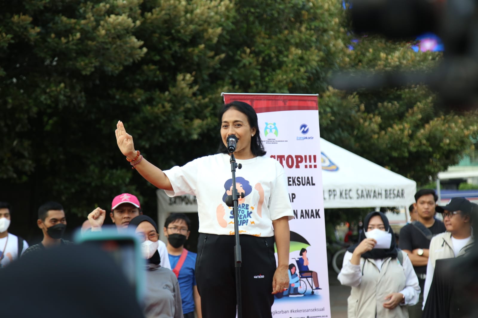 Menteri Pemberdayaan Perempuan dan Perlindungan Anak (PPPA), Bintang Puspayoga mengajak seluruh lapisan masyarakat untuk bersama-sama melawan dan menolak segala bentuk kekerasan terhadap perempuan.