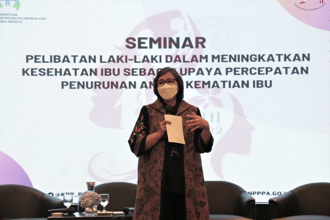 Kegiatan Seminar Pelibatan Laki-laki dalam Meningkatkan Kesehatan Ibu sebagai Upaya Percepatan Penurunan Angka Kematian Ibu upaya KemenPPPA untuk menguatkan kembali kampanye HeForShe dan peningkatan kesetaraan gender dalam keluarga melalui pelibatan dan peran laki-laki. Seminar ini turut dihadiri oleh berbagai narasumber diantaranya Muhammad Yusuf dari Kementerian Kesehatan dan Rifka Annisa dari WCC.