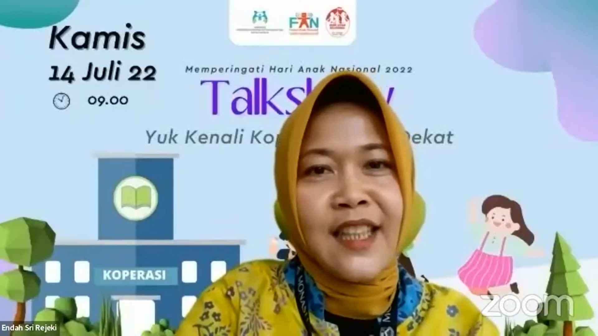 Jakarta (15/7) – Asisten Deputi Bidang Pemenuhan Hak Sipil, Informasi, dan Partisipasi Anak Kementerian Pemberdayaan Perempuan dan Perlindungan Anak (KemenPPPA), Endah Sri Rejeki mengatakan, Hari Anak Nasional merupakan momentum yang baik untuk memperkuat komitmen Pemerintah dan masyarakat terhadap perlindungan serta pemenuhan hak anak, termasuk hak atas partisipasi. Menurutnya, anak perlu dilibatkan dalam berbagai sektor pembangunan untuk menghasilkan kebijakan maupun program yang lebih baik dan tepat sasaran, salah satunya di bidang koperasi.
