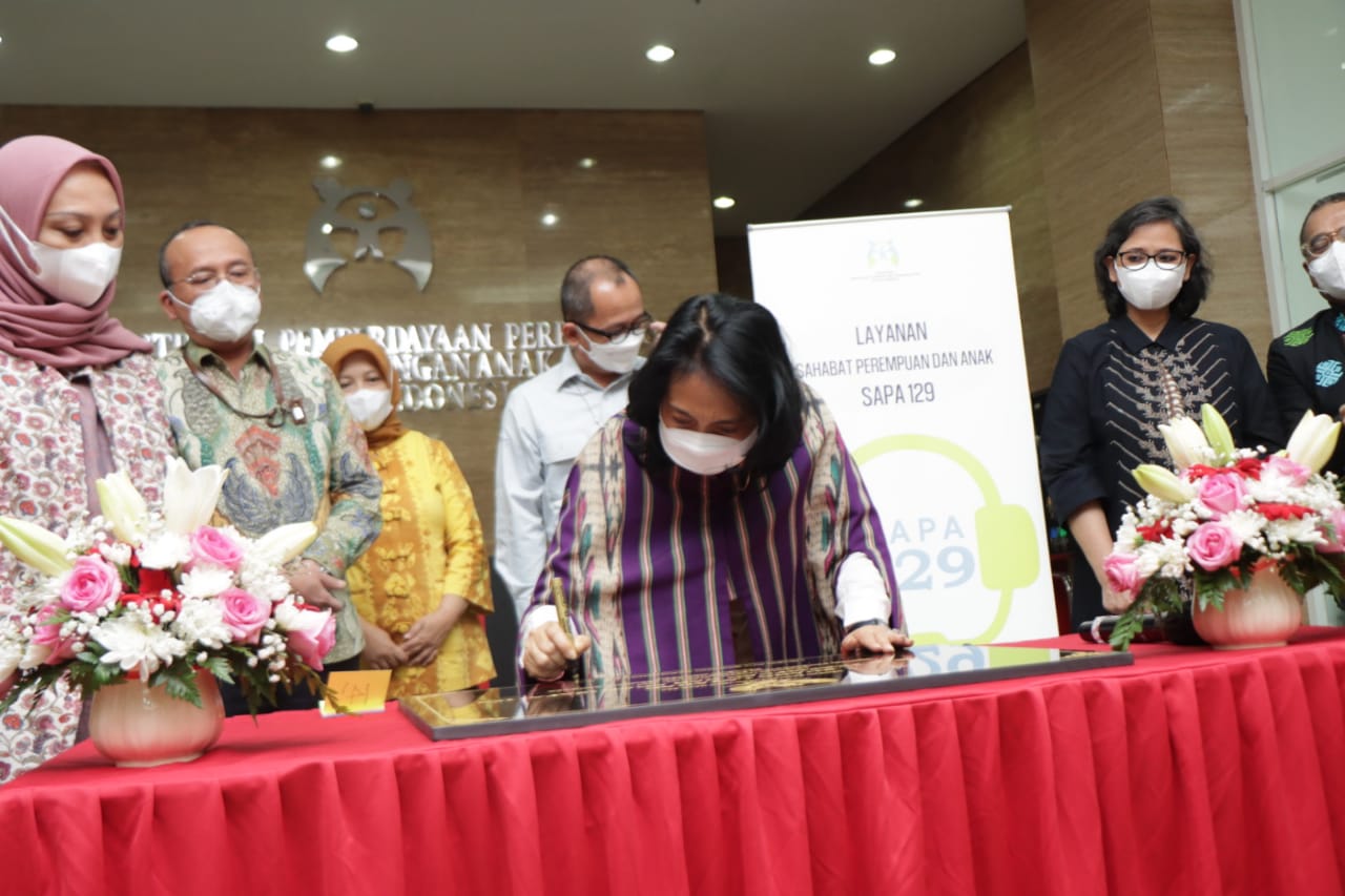 Jakarta (11/12) – Menteri Pemberdayaan Perempuan dan Perlindungan Anak (PPPA), Bintang Puspayoga menandatangani Prasasti Ruang Layanan Sahabat Perempuan dan Anak (SAPA) 129 di Gedung Kemen PPPA pada Jumat (10/12) malam. Penandatanganan ini bertepatan dengan berakhirnya 16 Hari Anti Kekerasan Terhadap Perempuan (HAKTP) yang juga merupakan Hari Hak Asasi Manusia (HAM).