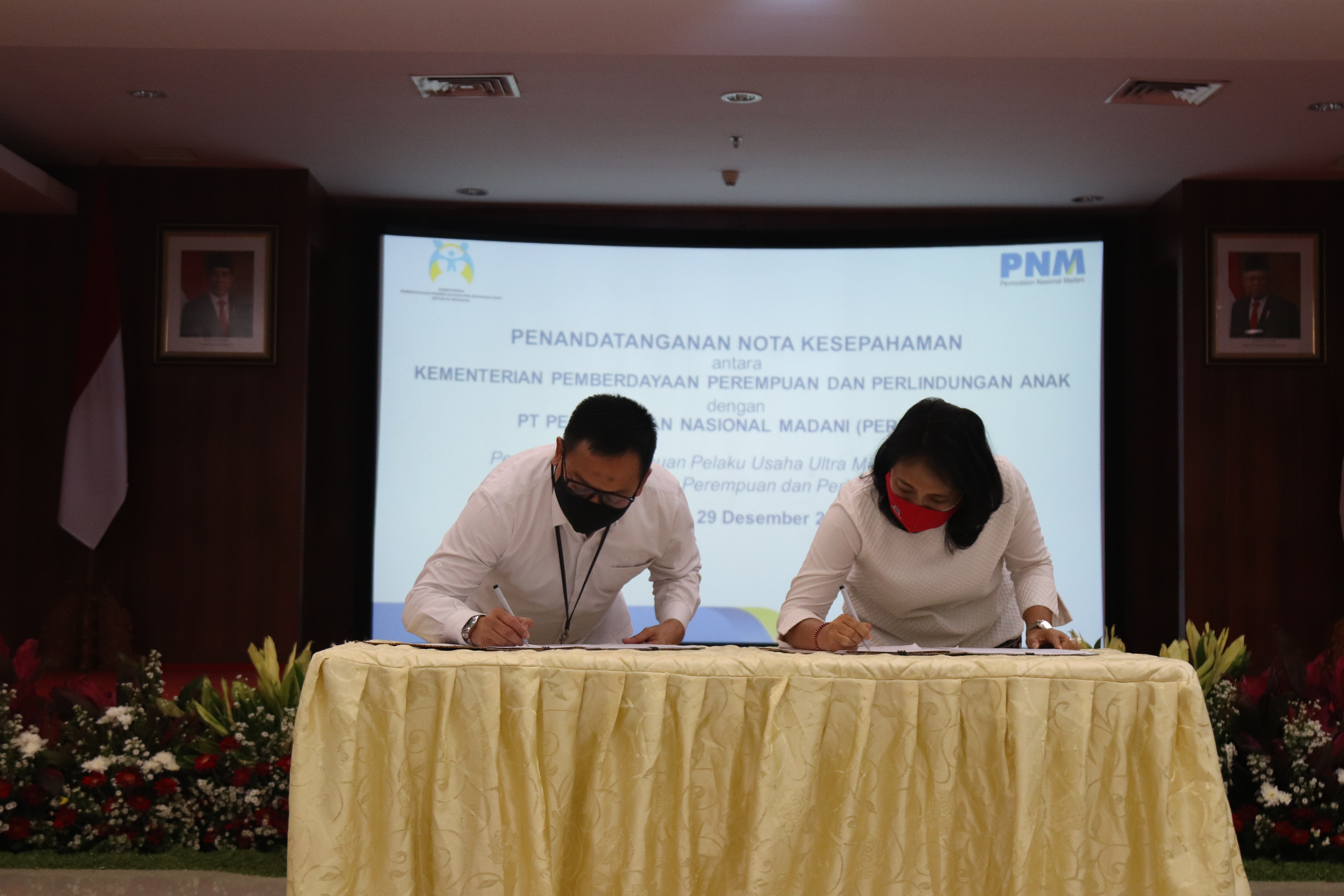 Jakarta (29/12) - Perempuan memiliki peran penting dalam pembangunan ekonomi di Indonesia. Namun sayangnya, kesenjangan gender di bidang ekonomi masih menjadi persoalan sekaligus tantangan yang dihadapi bangsa ini. Hal inilah yang melatarbelakangi Kementerian Pemberdayaan Perempuan dan Perlindungan Anak (Kemen PPPA) melakukan penandatangan nota kesepahaman (MoU) dengan PT. Permodalan Nasional Madani (PT. PNM) untuk memperkuat pemberdayaan perempuan di bidang ekonomi. Penandatanganan MoU tentang Peran Serta Perempuan Pelaku Usaha Ultra Mikro dan Mikro dalam Pemberdayaan Perempuan dan Perlindungan Anak dilakukan di Kemen PPPA, Jakarta hari ini (29/12).