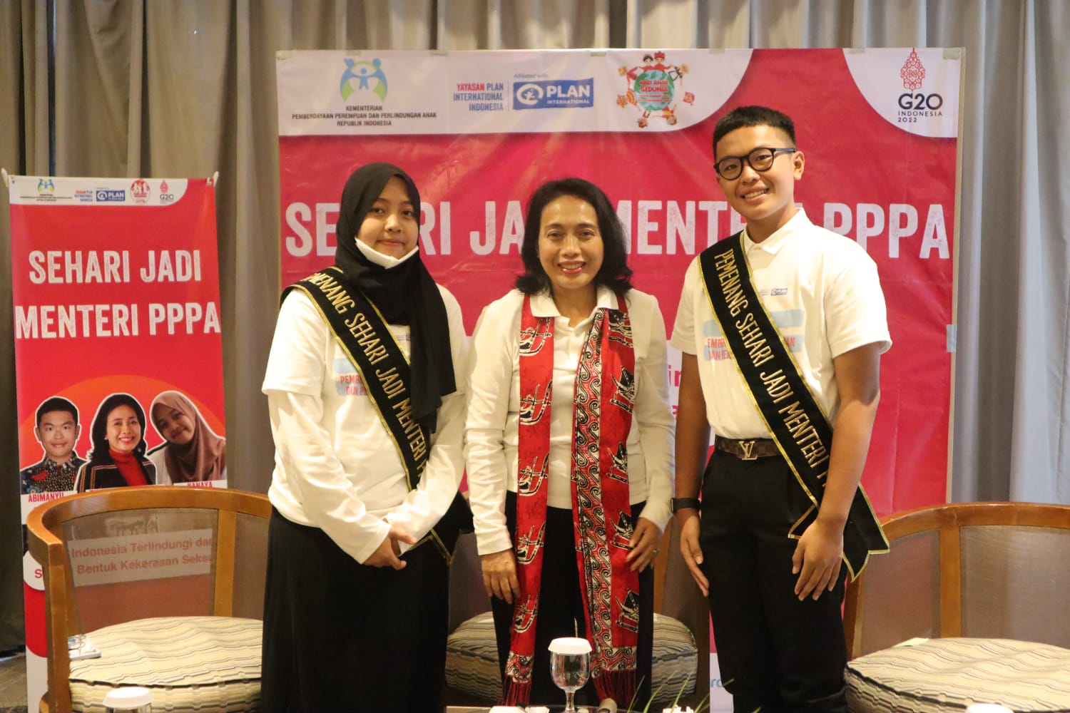 Manado (20/11) – Dua anak Indonesia, yaitu Kanaya (17) dan Abimanyu (15), akhirnya terpilih menjadi Menteri Pemberdayaan Perempuan dan Perlindungan Anak (PPPA) selama sehari, untuk menyuarakan penghapusan kekerasan seksual terhadap anak.