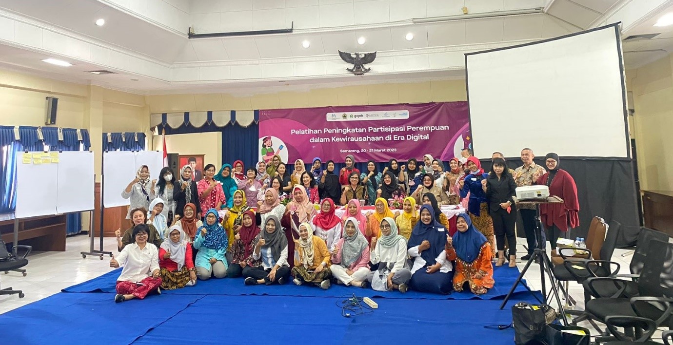 Dalam rangka penguatan UMKM perempuan di pasar berbasis digital, KemenPPPA bekerjasama dengan UN Women dan Gojek melaksanakan kegiatan Peningkatan Partisipasi Perempuan dan Kewirausahaan di Era Digital. Pelatihan ini diikuti oleh 50 perempuan UMKM yang telah siap naik kelas di Kota Semarang dan sekitarnya. Pelatihan yang dilaksanakan selama dua hari penuh ini bertujuan untuk (1) penguatan skil perempuan dalam meningkatkan profit UMKM yang dijalaninya, (2) maksimalisasi penggunaan perangkat dan dunia digital dalam memajukan UMKM milik perempuan, dan (3) memajukan pola pikir perempuan pemilik UMKM untuk tidak terjebak dalam konstruksi sosial yang membatasi potensi berkembang perempuan di bidang ekonomi.