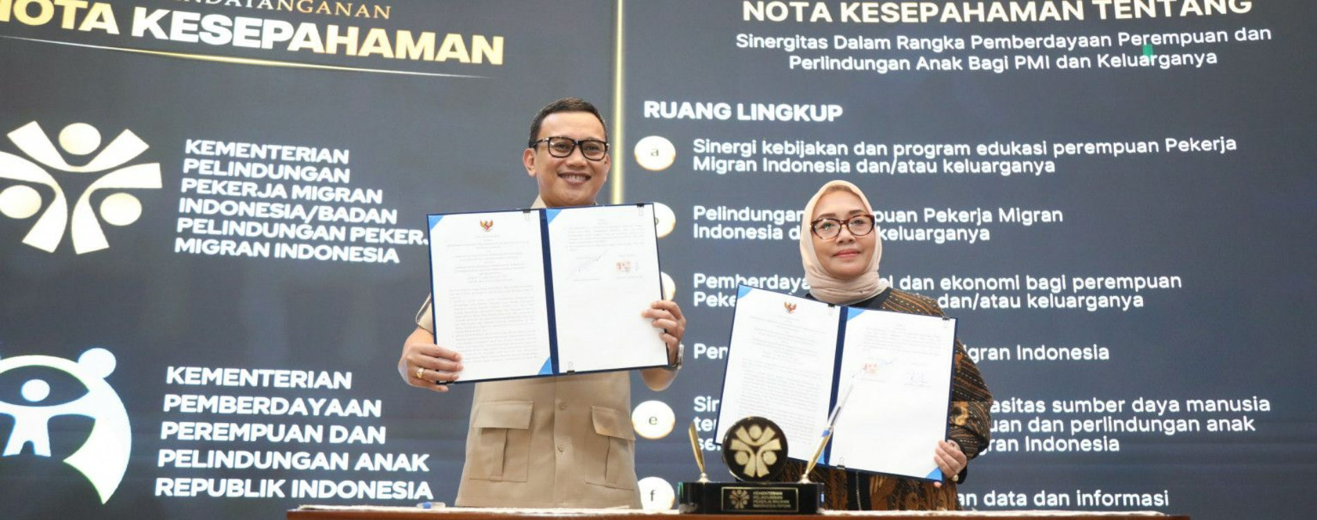 Jakarta (7/3) — Menteri Pemberdayaan Perempuan dan Perlindungan Anak (PPPA), Arifah Fauzi menandatangani Nota Kesepahaman (MoU) dengan Menteri Pelindungan Pekerja Migran...