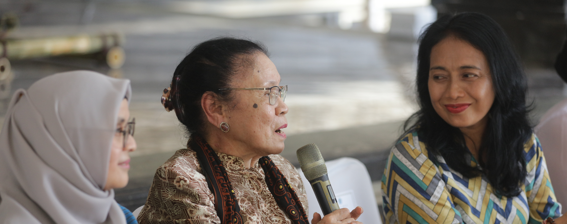 Menteri Pemberdayaan Perempuan dan Perlindungan Anak (PPPA) Bintang Puspayoga menerima kunjungan tokoh perempuan, Sjamsiah Achmad dalam sebuah forum temu perempuan inspir...