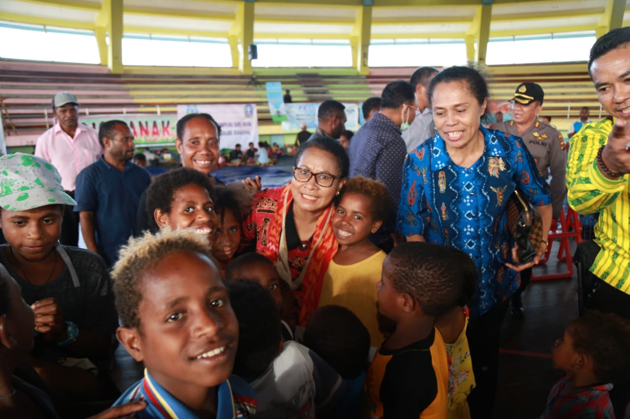 Sentani (31/03) – Menteri Pemberdayaan Perempuan dan Perlindungan Anak (PPPA), Yohana Yembise mengunjungi korban bencana banjir bandang Sentani, tepatnya di posko pengung...