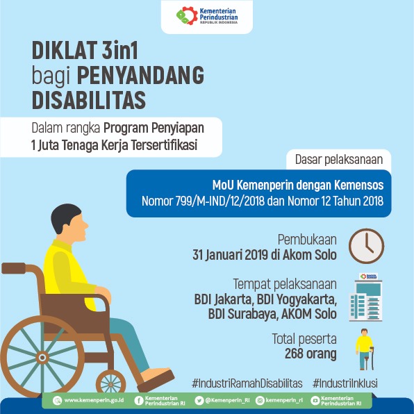 Kementerian Perindustrian dan Kementerian Sosial merealisasikan kesepakatannya untuk memacu kompetensi para penyandang disabilitas agar dapat bekerja di sektor industri....