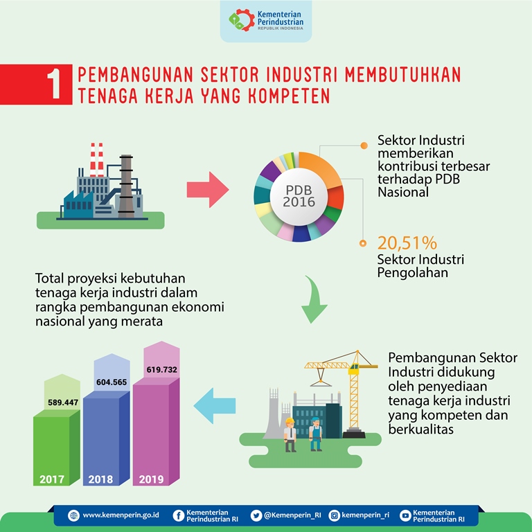Pemerintah berkomitmen untuk memenuhi kebutuhan SDM Industri dengan memfokuskan pada penyiapan satu juta tenaga kerja industri tersertifikasi hingga tahun 2019