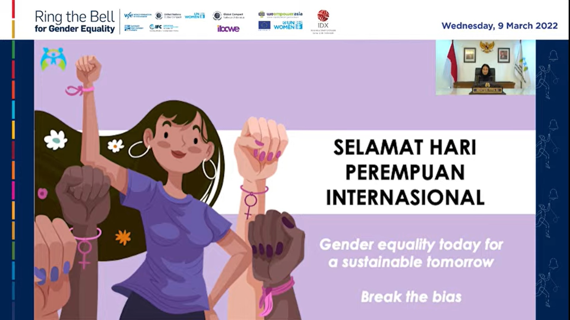 Dalam momentum peringatan Hari Perempuan Internasional, Menteri Pemberdayaan Perempuan dan Perlindungan Anak (PPPA) Bintang Puspayoga mengajak dunia usaha dan sektor swas...
