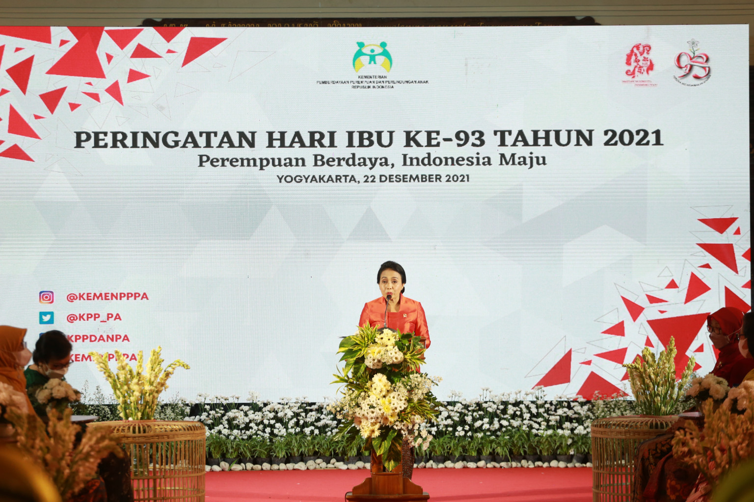 Puncak peringatan Hari Ibu (PHI) Ke-93 dilangsungkan di Gedung Monumen Kesatuan Pergerakan Wanita Indonesia, Mandala Bhakti Wanitatama, Provinsi DI Yogyakarta. Kota Yogya...