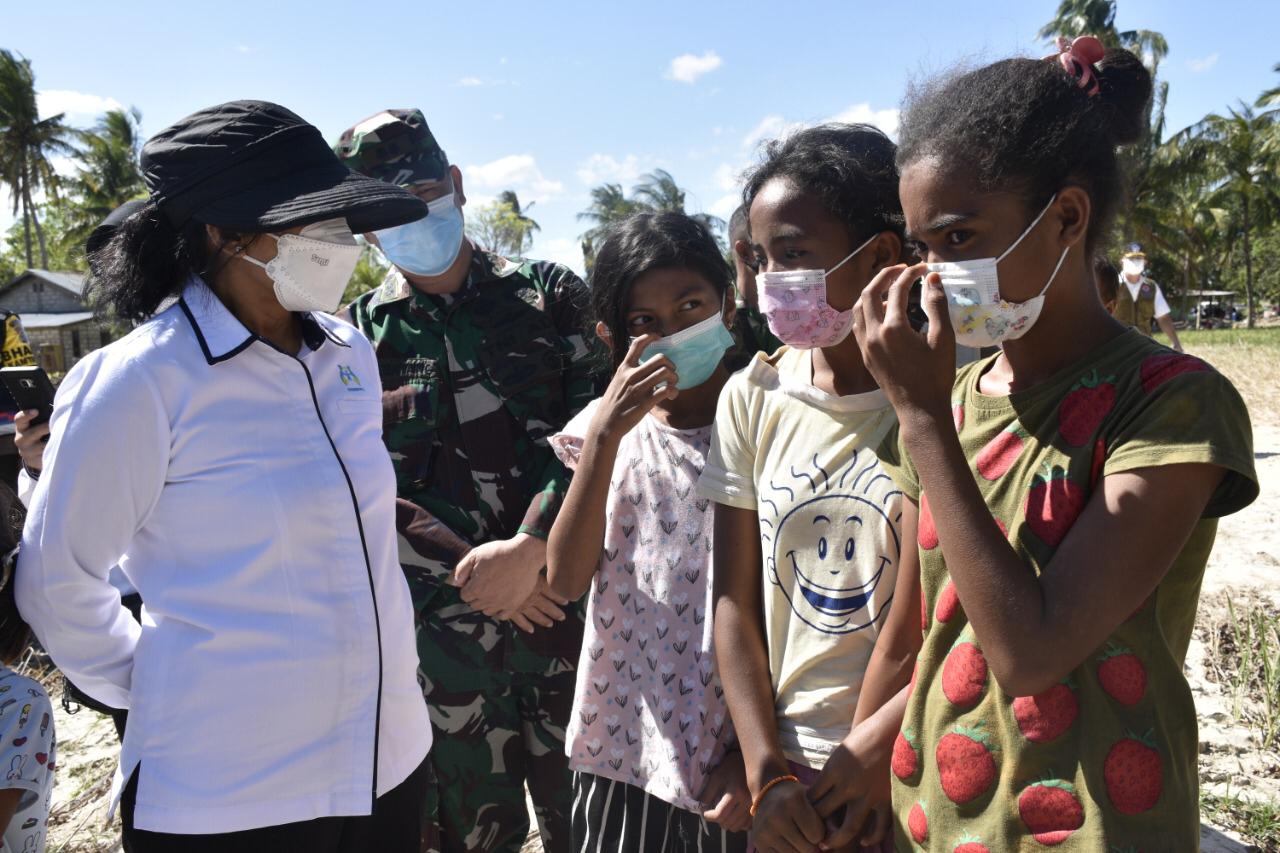 Menteri Pemberdayaan Perempuan dan Perlindungan Anak, Bintang Puspayoga memberikan apresiasi kepada Sekolah Perempuan dan para pendamping di Desa Neboelaki Kabupaten Kupa...