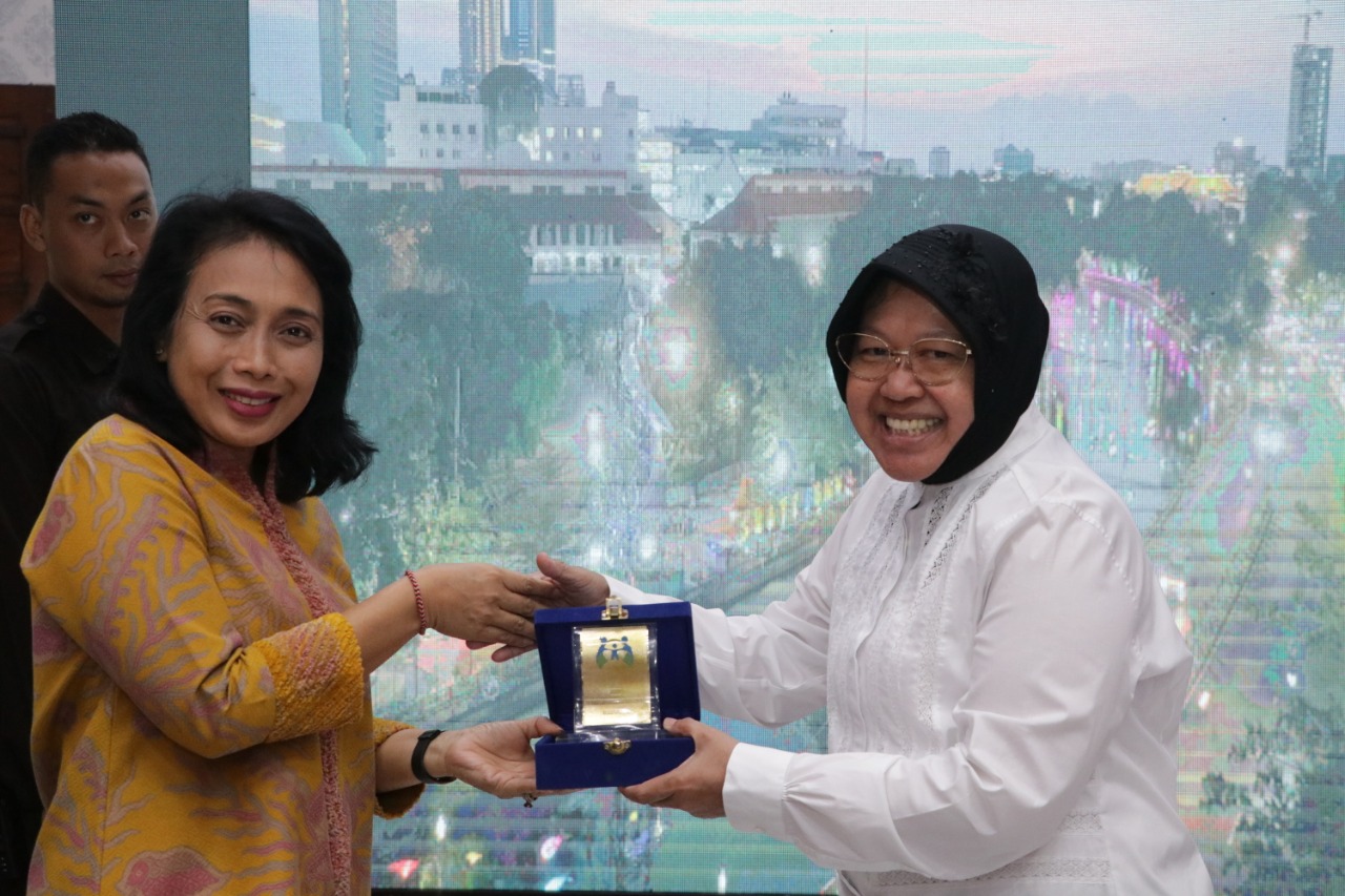 Dalam pertemuannya dengan Wali Kota Surabaya, Tri Rismaharini atau akrab dipanggil Risma, Menteri Pemberdayaan Perempuan dan Perlindungan Anak (PPPA), Bintang Puspayoga m...