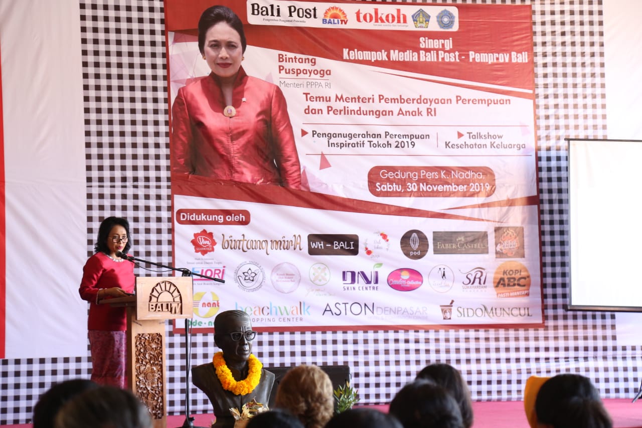 Bali (30/11) – Menteri Pemberdayaan Perempuan dan Perlindungan Anak, Bintang Puspayoga berkesempatan menghadiri acara Penganugerahan Perempuan Inspiratif Tokoh 2019 dan T...