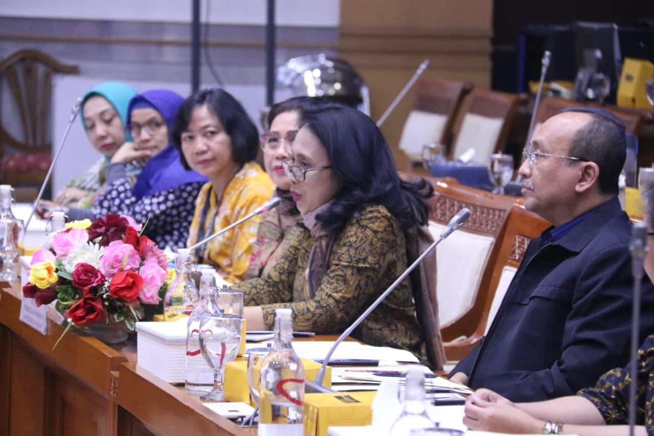 Menteri Bintang Puspayoga didampingi Sekretaris Kemen PPPA dan jajaran Eselon 1 mengikuti rapat pertama dengan Komisi VIII DPR RI di Jakarta, Rabu (13/11).